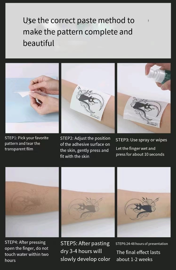 1.For Semi-permanent tattoo stickers, it can’t be removed. For faster removal, rub and wait for them to fade through time or can use salty water to soak the tattoo for 20-30 minutes before that.